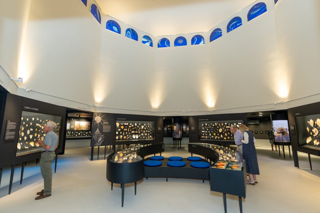 The Great Hall of Shells is the historic heart of the Museum, with extensive permanent exhibits of shells in a striking octagonal gallery space with 30-foot ceilings. Following significant damage from Hurricane Ian in 2022, the Museum embarked on a full re-design and re-installation of the shell exhibits and the Great Hall.